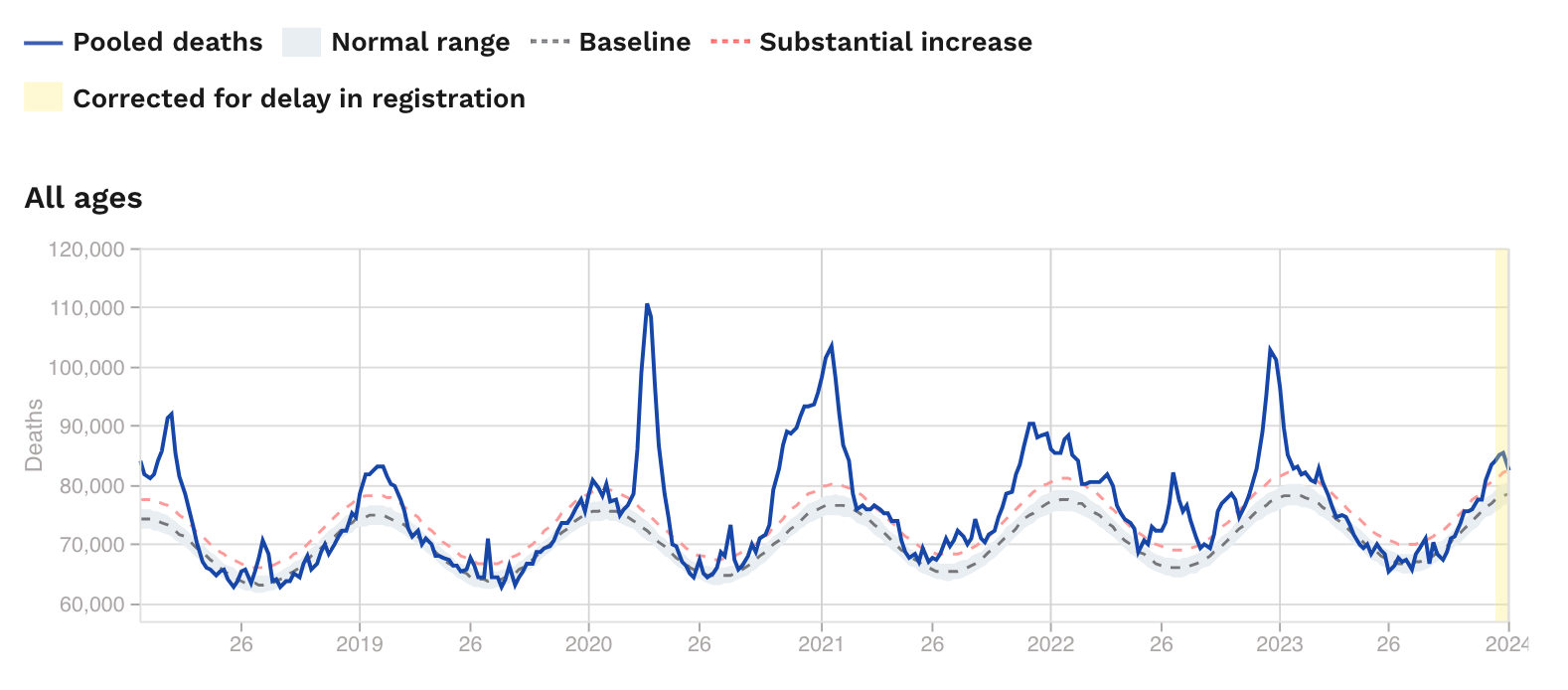 Pearson-Stuttard et al, “Excess mortality in England post COVID-19 pandemic: implications for secondary prevention”, The Lancet, January 2024; 26: 100802.