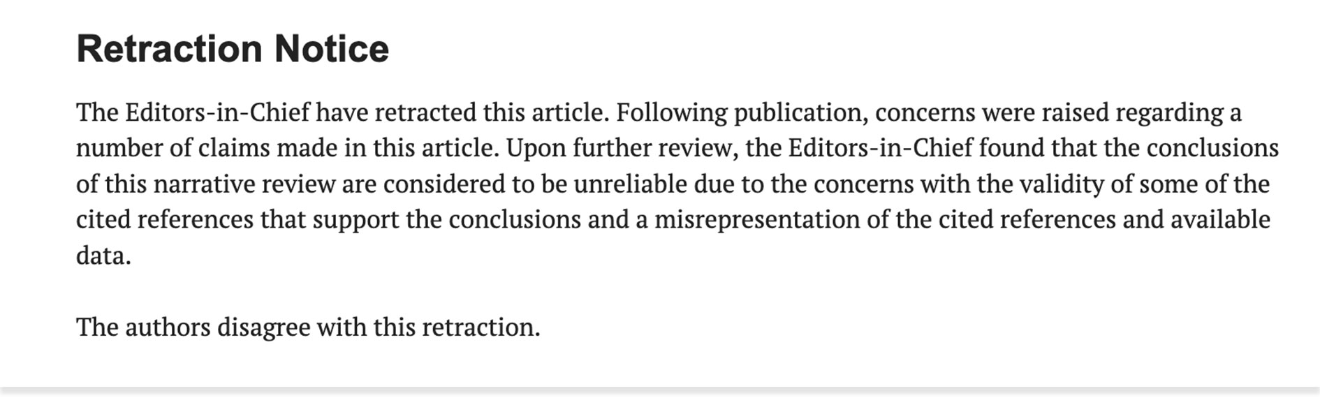 - The journal gave several reasons for the retraction, that occurred after nearly 5 months of peer review, and allowed no right of reply or appeal